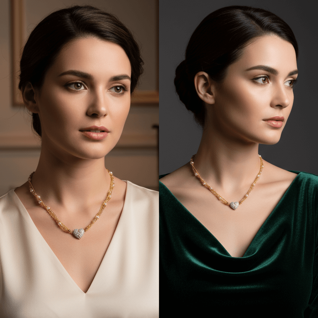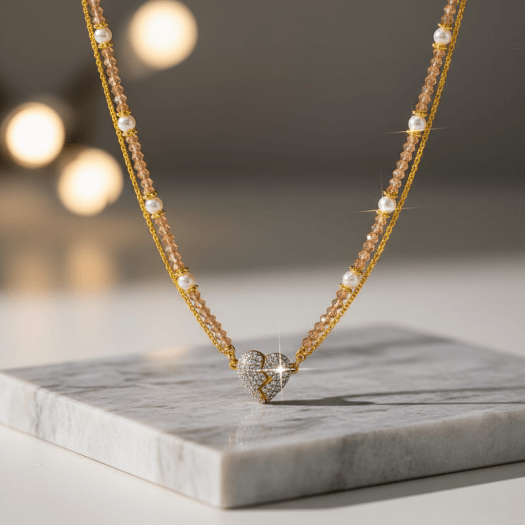 ليست مجرد قلادة… بل نبضُ حبّ يُلامس قلبكِ مع كل لمعة! ✨💞